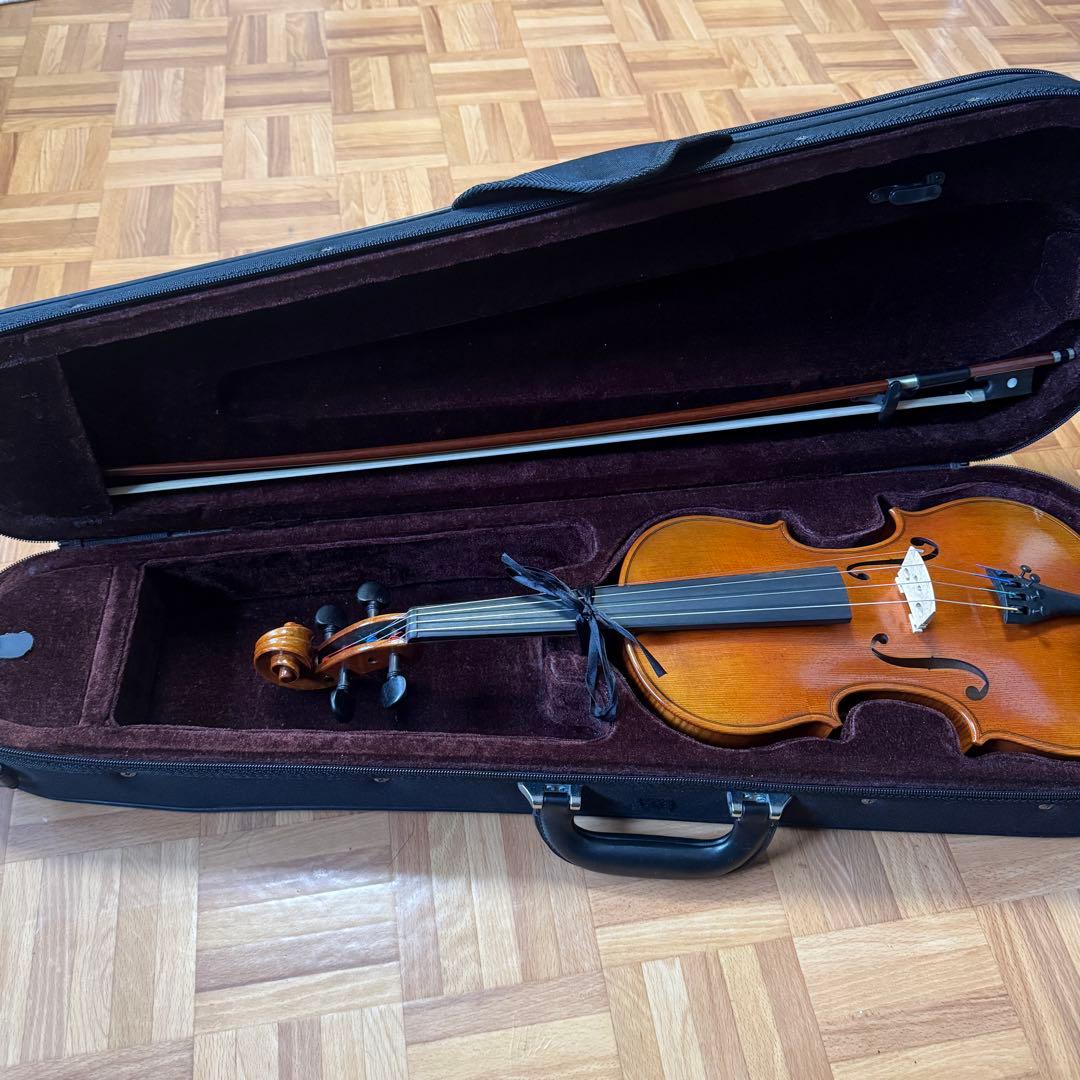 ブラウンの木製バイオリン本体、ハードケース付き、弓と弦も含む。- モデル: バイオリン本体- 色: ブラウン- 付属品: 弓、弦、証明書- ケース: ハードケース- 素材: 木製ご覧いただきありがとうございます。押し入れに眠ってる品です。当方詳しくないのでわかりませんが、質問あればお願いします。ノンクレーム、ノンリターンでお願いします。
