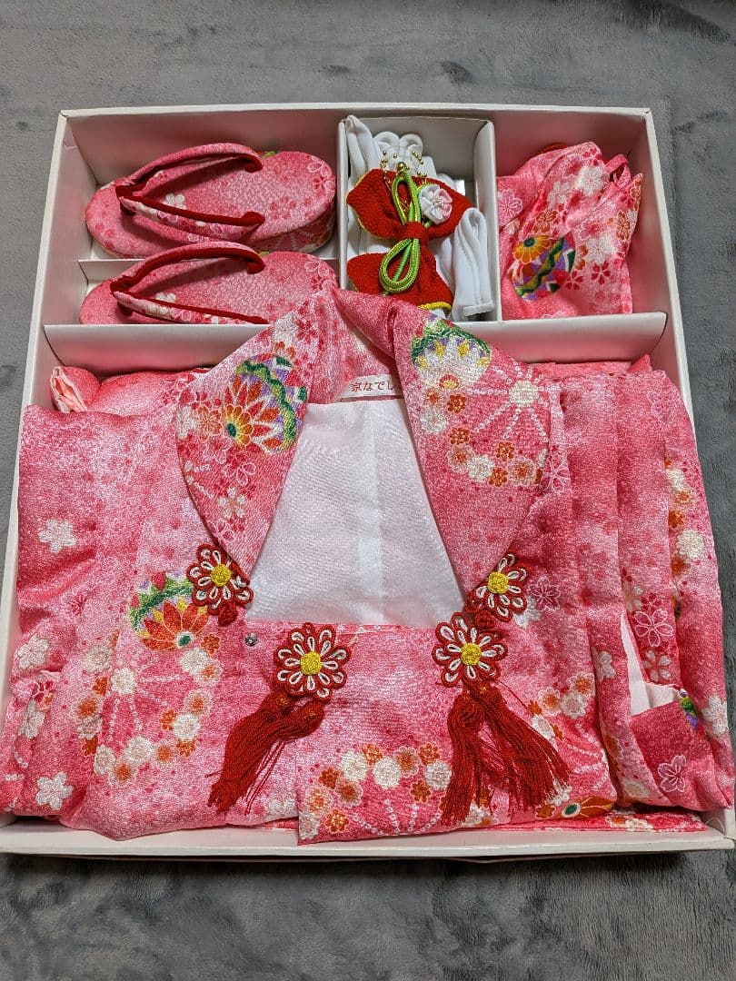 *こちらの商品は一つ身の着物&被布です。(その他のベレー帽、ブーツはセットに含まれません。)\r紗綾型地紋が浮かび上がる赤、淡い黄色、白などの地に、金彩が施された毬や花、雲どり文様の可愛らしい七五三3歳のお着物セットです。\r\r\r(着物)一つ身のお着物です。肩上げをしておりませんので、お子様の裄丈に合わせてお直しをお願いします。特に目立つシミやダメージはございません。\r(長襦袢)こちらには長襦袢が付属いたしません。代わりにお子様の負担が少なく便利な「子ども用楽々衿」をお勧めします。#ag楽々衿\r(被布)後身頃に、洒落紋付き。特に目立つシミやダメージはございません。\r\r【素材】(着物)正絹、(被布)正絹\r【色】赤、淡い黄色、白など\r【サイズ】(着物) 裄:48cm、肩上げ幅:0cm、袖幅:30cm、袖丈:57cm、丈(肩から):99cm、腰上げ幅:0cm、前幅:15cm、後幅:16cm\r(被布) 幅:34cm、丈(肩から):60cm\r\r七五三後は、お正月やお節句などにもいいですよ。お求め安い価格での出品ですので、いかがでしょうか?\r\r即決購入歓迎します。\r複数購入の場合は、お値引きいたしますのでコメントください。\rご不明な点は、ご購入前にお気軽にご質問ください。\r1日経ってもコメントへの返信がない場合は、見落としの可能性がございます。お手数ですが、再度ご質問いただければ幸いです。\r\r3歳女の子はこちら #ag子供3歳\r女の子はこちら #ag子供\red\"